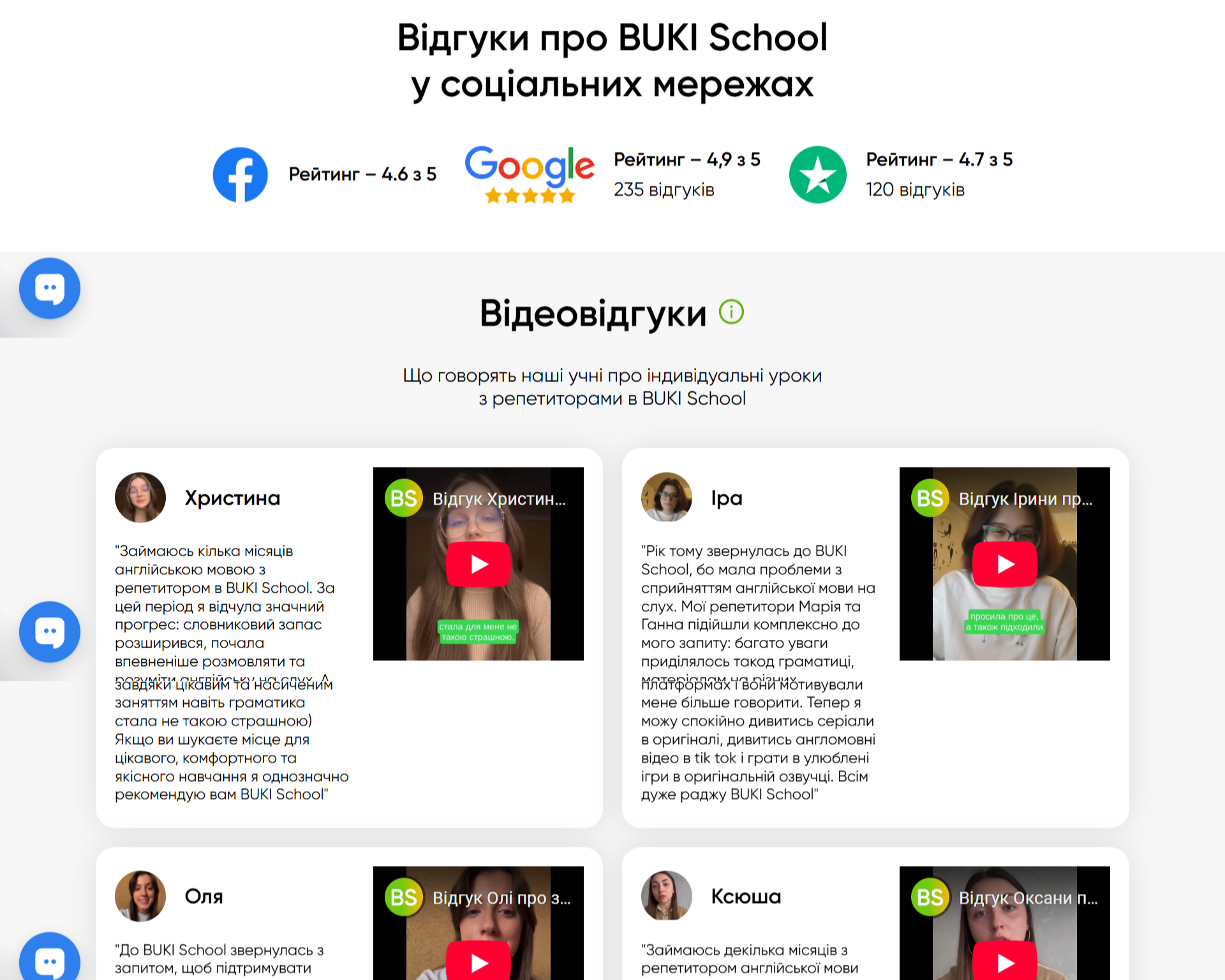 Між іншим, на сайті школи є окрема сторінка з відгуками (як письмовими, так і відеовідгуками). У підсумку, викладачі школи вже отримали понад 10 тис. позитивних оцінок та коментарів.